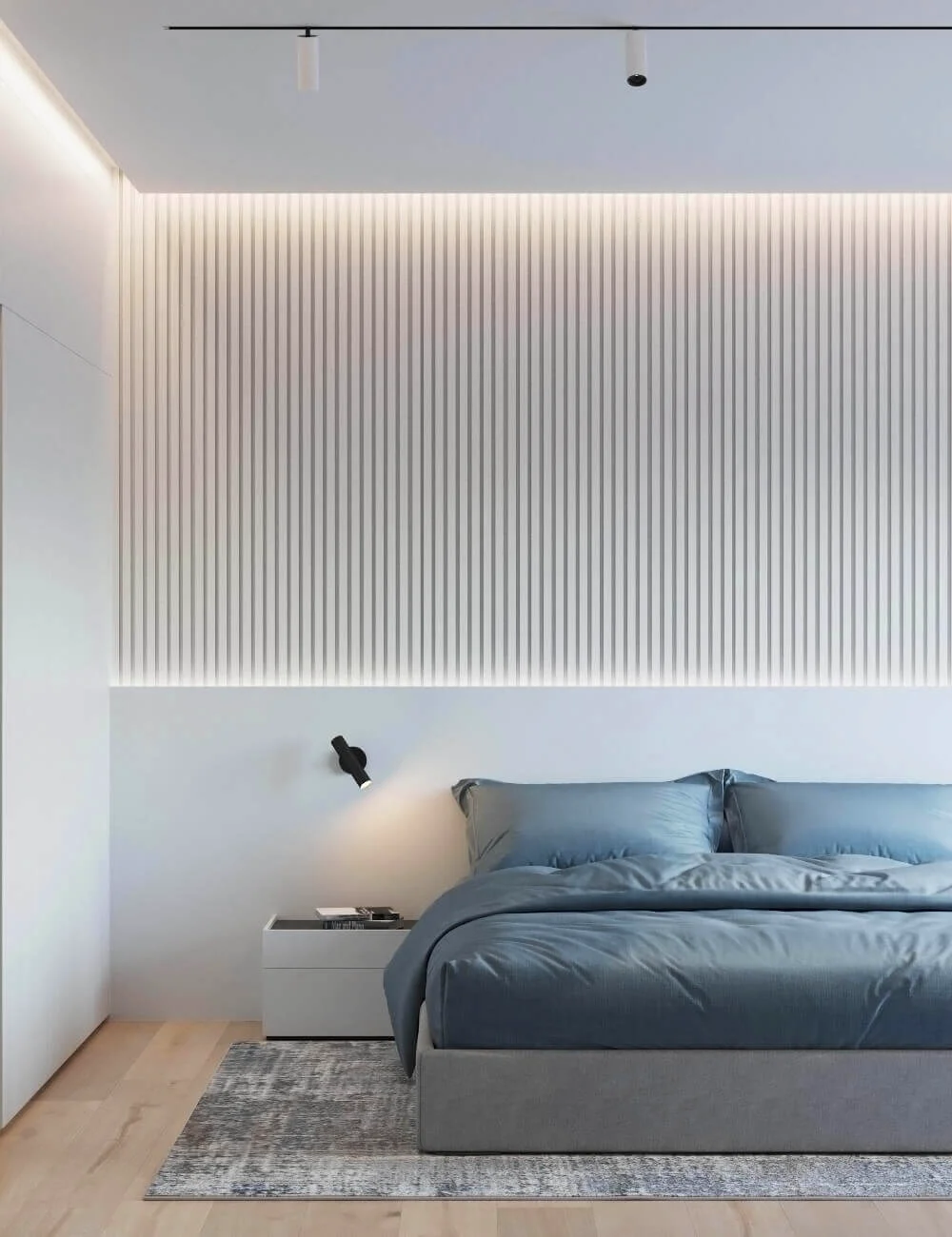 Акцентами стали – дерево светлого оттенка и синий цвет, именно они придали цвету и натуральности пространства.